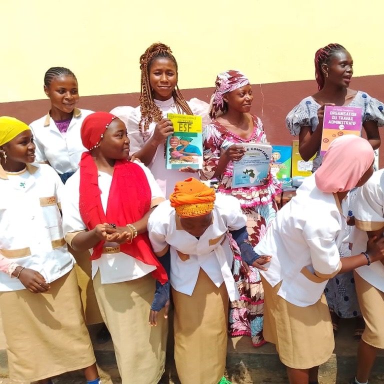 Was für ein Moment: Dank einer ersten Überweisung von 3.000 € konnten in Yaoundé die ersten Bücher für unsere Partnerschule gekauft und in einer feierlichen Zeremonie an die Schülerinnen und Schüler übergeben werden.