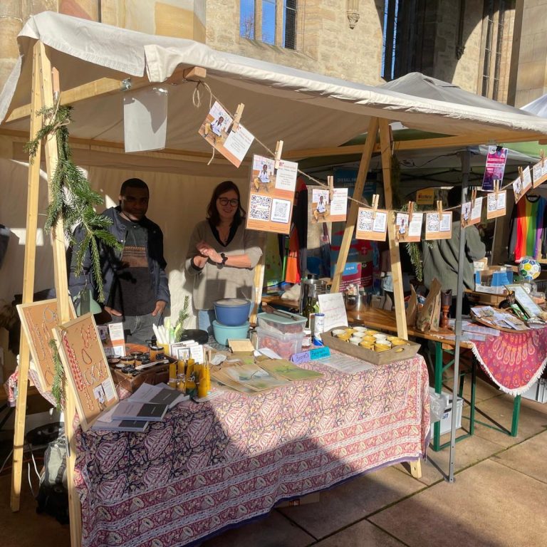 Wir sammeln Spenden auf dem fairen Adventsmarkt in Erfurt